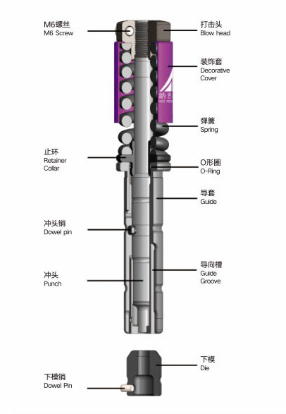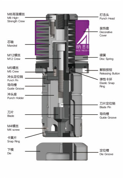 - 所有沖頭刃口均采用特種的高速工具鋼,全部經(jīng)真空熱處理,硬度HRC60°-63°