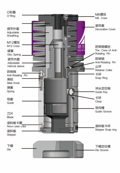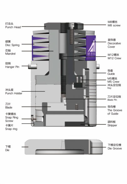 - 下模采用優(yōu)質(zhì)模具鋼,全部真空熱處理,刃口均為防帶料設(shè)計(jì),有效防止廢料反彈、跳料、上浮發(fā)生。