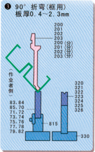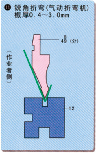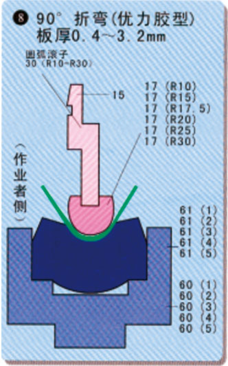 材料的板厚及折彎的內(nèi)側(cè)半徑?jīng)Q定后,請參閱下表。