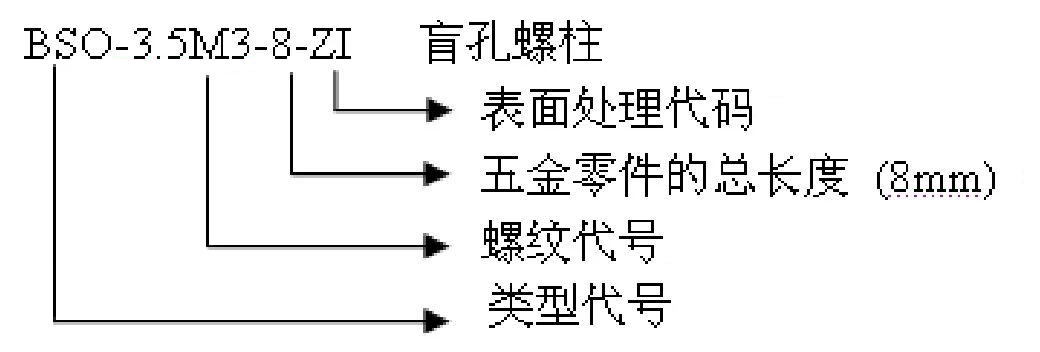 4.壓鉚螺母表示方法說明,以S-M3-1-ZI為例: