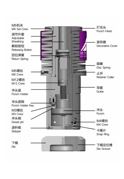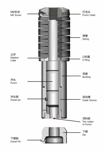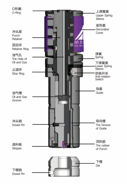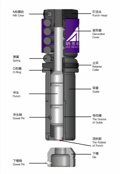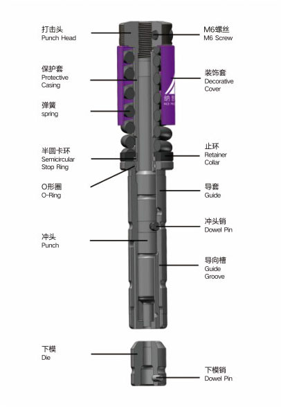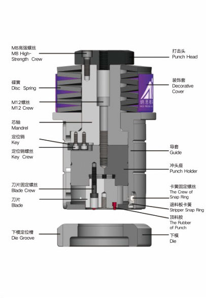 - 所有沖頭刃口均采用特種的高速工具鋼,全部經(jīng)真空熱處理,硬度HRC60°-63°