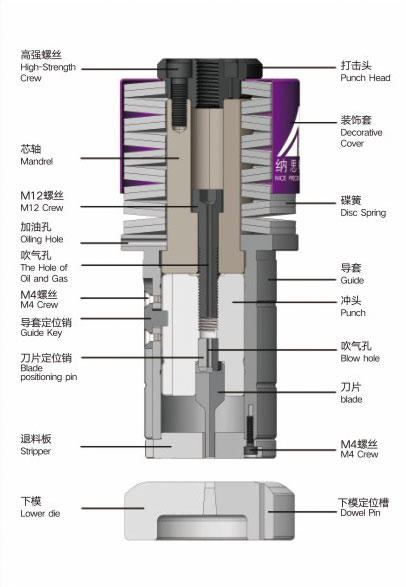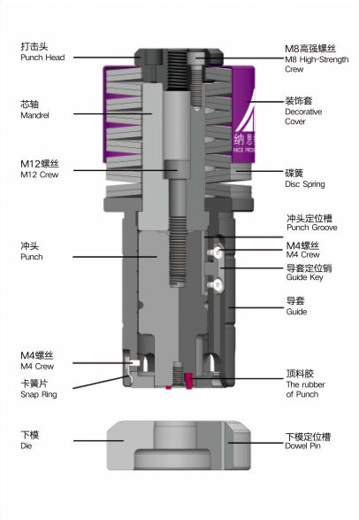 - 下模采用優(yōu)質(zhì)模具鋼,全部真空熱處理,刃口均為防帶料設(shè)計(jì),有效防止廢料反彈、跳料、上浮發(fā)生。