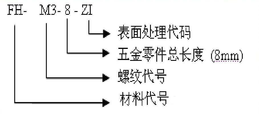 4.壓鉚螺釘表示方法說明,以FHS-M3-8-ZI為例